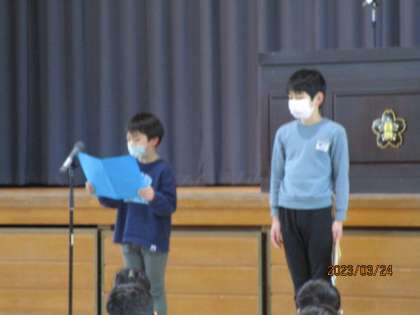 1年生と5年生の代表児童が、がんばったことを堂々とした態度で発表しました。代表児童だけではなく、一人一人に、がんばったこと、できるようになったことがたくさんあります。自分の成長を振り返り、自信としてほしいです。