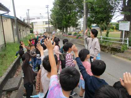 2年生は、生活科「町のすてき 大はっ見」の学習で、まち探検に行ってきました。月岡にあるすてきなものを見つけようと、お菓子屋さんの場所を確認したり、公園で遊んだりするなどして、自分たちの住んでいる地域に親しみをもちました。これからも、月岡地区のよさを見つけていってほしいと思います。