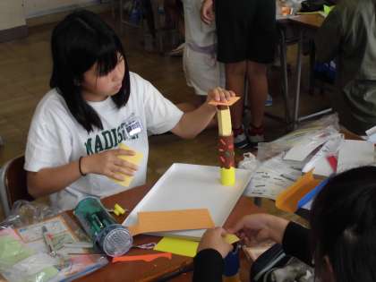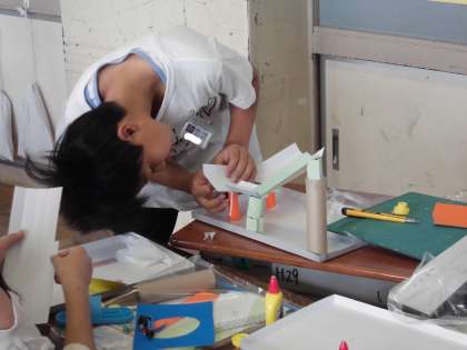 図画工作科の学習では、画用紙や片面段ボール、紙管などの材料を使って、立体的な迷路ゲームをつくっています。子供たちは、どんな迷路にしようかとイメージを膨らませながら、いろいろな仕掛けをつくったり、模様をつけたりしていました。どのような迷路に仕上がるのか、完成が楽しみです。