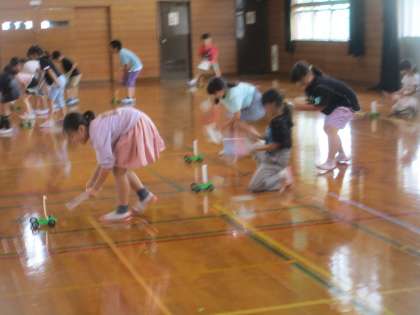 3年生「理科の学習♪」 公開日 2023/06/14 更新日 2023/06/14 第3学年 今日は、理科の学習で車をつくり、手を触れないで車を動かす活動をしました。子供たちは、下敷きやうちわ、教科書等を使って風を送り、車を動かすことができました。その後、車を動かす中で気付いたことをみんなで話し合いました。一生懸命考える子供たちの姿がたさん見られた理科の時間となりました。