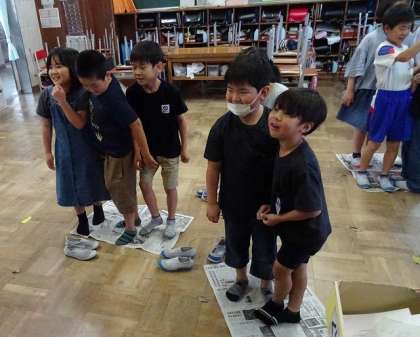 今日の四つ葉タイムには、縦割り班ごとに仲良く遊びました!白団11班・12班では、新聞たたみゲームを行いました。チームごとに新聞紙の上に乗り、じゃんけんで負けると半分に折りたたまなければならなくなり、みんなの乗るスペースがさらに小さくなりました。子供たちは、じゃんけんに勝つと歓声を上げ、負けると悲鳴を上げるなど、新聞たたみゲームを心から楽しんでいました。準備をしてくださった6年生のみなさんありがとうございました。