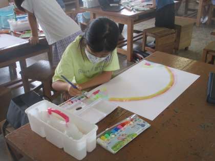 3年生 わたしの6月の絵 公開日 2023/06/19 更新日 2023/06/19 第3学年 図工の時間に、水彩道具を用いて絵を描いています。 テーマは「6月」で、それぞれがイメージを広げて取り組んでいます。 じめじめとした雨やさわやかな虹など、子どもによってイメージも様々です。どんな作品に仕上がるのか、今から楽しみです!