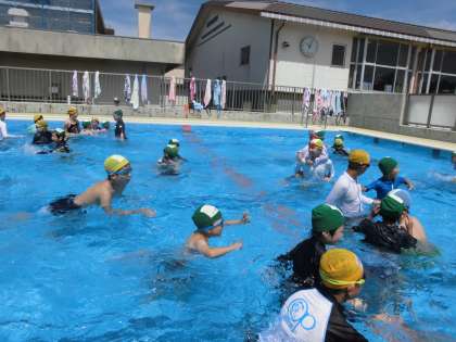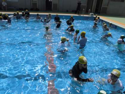 日は、待ちに待ったプール開きでした。小学校に入学してから初めてのプール学習。今日は、6年生さんにバディを組んでもらい、一緒に活動しました。プールの中でのジャンケンやプールのたてを往復するリレー等の活動に6年生さんと一緒に思い切り楽しむことができました。