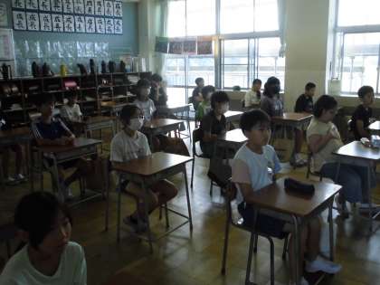静かだった教室に子供たちの元気な声が戻ってきました。始業式では、校長先生の話を全員真剣に聞いていて、2学期に向けての意欲を高めていました。今後、さらに高学年として成長していく子供たちが楽しみです。