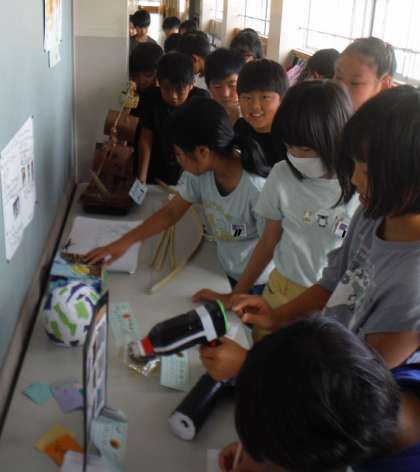 夏休み作品展がありました。他の学年の作品をみんなで鑑賞して、自分のお気に入りの作品を紹介しあいました。不思議な仕組みがある物や、身近な物を使ったリサイクル作品が心に残ったようでした。すばらしい作品をしっかりと見て、自分の学習に生かしていこうと考えました。