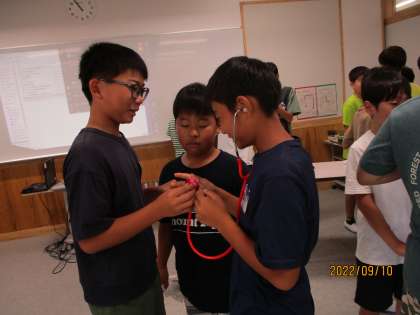 今日は、看護師の方に来ていただき、看護の仕事について詳しく教えていただきました。また、手洗いや聴診器などの体験も行い、命を守る大切さを感じたようです。そうした命を扱う看護師は責任のある大変な仕事でもあり、人に感謝される、とても人の役立つ仕事であると感じたようです。