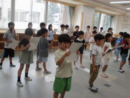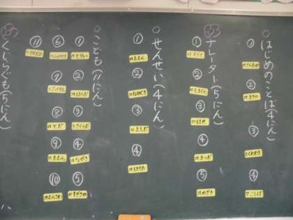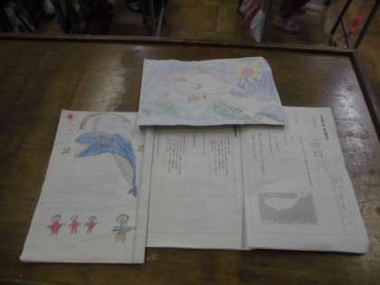 1年生は、「くじらぐも」の音楽劇をします。一人一人が、きれいな声で歌えるように、自分の担当の台詞をしっかりと言うことができるようにと、一生懸命練習に取り組んでいます。音楽劇の台本には、「くじらぐも」をイメージした絵も描きました。学習発表会本番に向け、気持ちを盛り上げて頑張っています!
