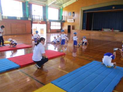 2年生 スポーツ指導 公開日 2023/09/29 更新日 2023/09/29 第2学年 スポーツ指導員の方が来校され、マット運動を指導していただきました。 前転・後転で、素早くかっこよく立てるようになる子供がたくさんいました。子供たちもできるようになったことがうれしいようで「楽しかった!」と笑顔を見せていました。教えていただいたことを忘れず、練習を続けたいと思います。