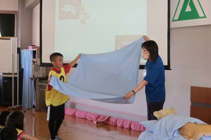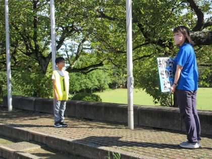富山県呉羽青少年自然の家に着きました。入所式では、代表の班長が、2日間の目標を宣言しました。また所の方からオリエンテーションとして、シーツのたたみ方や食事の仕方など丁寧に教えていただきました。