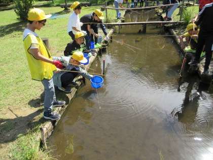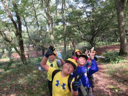 4年 宿泊学習 活動編「森の木オリエンテーリング」 公開日 2023/10/05 更新日 2023/10/05 第4学年 1日目午前中の活動では、呉羽の森の中を巡る、森の木オリエンテーリングをしました。とても天気もよく、森の中を歩くと、とてもすがすがしい空気を感じることができました。地図を見ることが苦手な班は、直感を頼りに、いくつものポイントを見つけていました。ゴールした後には、ザリガニつりを行いました。