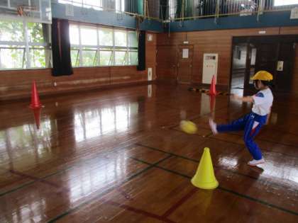 2年生 ねらって、えい! 公開日 2023/10/23 更新日 2023/10/23 第2学年 体育の学習で、ボール蹴り運動を始めました。ペアでパスを出し合ったり、的をねらって蹴ったりしました。「難しいよ」という子供もいましたが、上手に真っ直ぐ蹴ることができました。友達が的に当てると、「ナイス!」と声をかけ、拍手をしていました。声を掛け合いながらがんばっている2年生です。