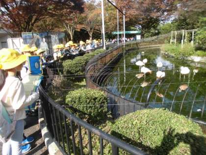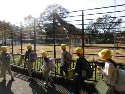 今日は、待ちに待った校外学習の日でした。心配していたお天気でしたが、活動中は雨に降られることもなく、絶好の校外学習日和となりました。ファミリーパークでは、動物を見たり、どんぐりや落ち葉等の秋の自然物を拾ったりしました。また、芝生広場では、おいしいお弁当を食べ後、広場を走り回ったり遊具で遊んだりもし、ファミリーパークを思いっきり満喫することができました。