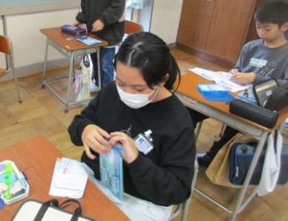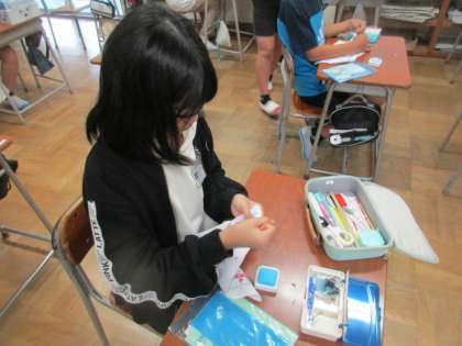 この日は、ボタン付けに挑戦しています。とても真剣に取り組む姿がすてきでした。