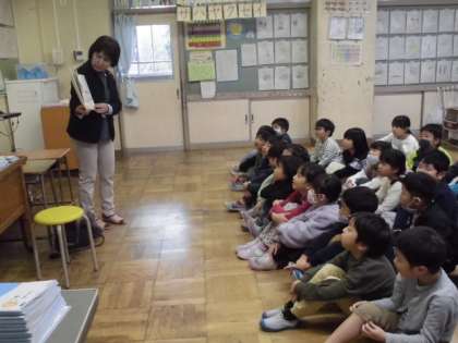 月曜日は、お話ミッケの会がありました。「きょうはみんなでクマがりだ」と「これはのみのぴこ」の本を読んでもらいました。特に、「これはのみのぴこ」は今国語で学習している谷川俊太郎さんが作者の本で、みんな集中して聞き入っていました。