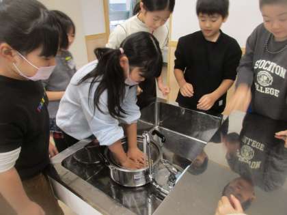 3年生 豆腐作りの下準備! 公開日 2023/11/28 更新日 2023/11/28 第3学年 国語科「すがたをかえる大豆」の学習の一環として、明日は班に分かれて豆腐作りを体験します。 今日は、下準備として大豆を洗い、水につけました。大豆を洗う際には、班のメンバーで交代しながら行う姿が見られました。 子どもたちからは「明日が楽しみ!」という声がたくさん聞こえてきました。
