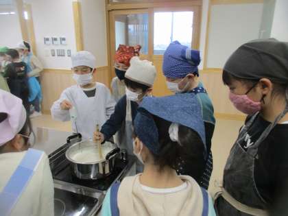 3年生 豆腐作りにチャレンジ!1 公開日 2023/11/30 更新日 2023/11/30 第3学年 昨日下準備した大豆を使って、いよいよ豆腐作りにチャレンジしました。 普段はすぐに買うことのできる豆腐ですが、作られるまでに長い時間がかかることが分かりました。 大豆が豆乳やおから、豆腐に姿を変えていく様子に、子どもたちは興味津々でした。