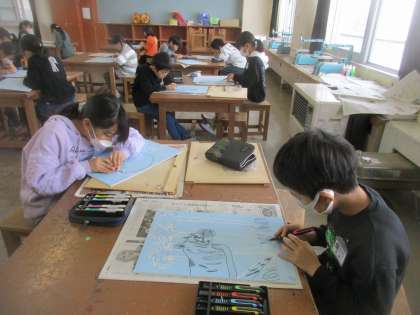 3年生 はじめての彫刻刀 公開日 2024/01/29 更新日 2024/01/29 第3学年 3年生は図工の時間に版画作りをしています。彫刻刀を使うのは初めての子どもたち。慎重に、丁寧に掘り進めています。子どもたちは作品の完成をとても楽しみにしています。