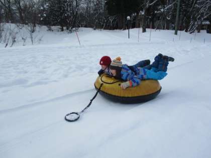 雪っ子遠足に行ってきました!!(その2) 公開日 2024/02/08 更新日 2024/02/08 第1学年 2月7日(水) 今日は、待ちに待った雪っ子遠足でした。1年生は、2年生さんと一緒に雪像造りをしたりチューブそりをしたりして、雪の遊びを思いっきり楽しむことができました。同じグループの2年生も仲良しになることができ、とてもよい思い出ができました。 写真上・中 チューブそりの様子 下 昼食の様子
