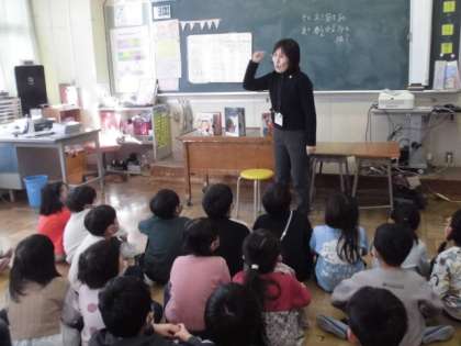 今日は、1年生で最後のおはなしミッケの会でした。「お多福」「節分」「立春」「干支」の4つをテーマにした3冊の本を読んでもらいました。ミッケの会の中島さんの表情ある読み聞かせに、1年1組の子供達は、いつものように、物語の引き込まれるように集中して聞いていました。3冊目の「鬼のパンツ」のときには、みんなで声を合わせて「鬼のパンツ」を歌いました。この1年、お話ミッケの会を通して、本が大好きな子供が随分ふえました。中島さん1年間、本当にありがとうございました。