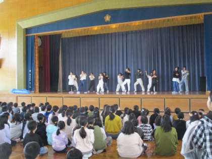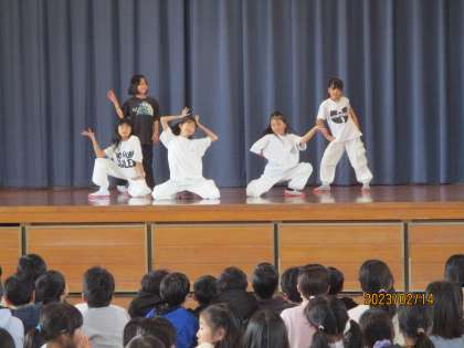 これまで練習してきたダンスを、今日は全校のみんなに披露しました。自分を思いきり表現する子供たちの様子に、大きな手拍子で応えてくれる全校の子供たち。あたたかい雰囲気の月岡っ子のひとときでした。