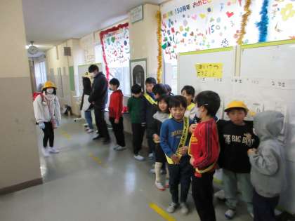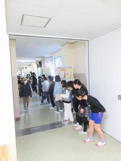 計画委員会の企画で、ペア学年によるあいさつ運動を行っています。初日は、遠慮気味だった子供たちも2日目になると、元気よくあいさつを行っていました。あと2日間少しずつ人数が増えて、校内にあいさつがもっと広がってくれることを期待しています。
