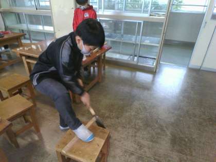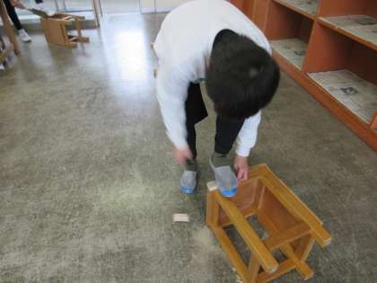 図画工作科では、ギコギコトントンの学習に入りました。のこぎりで切った木を、クギでつなげて作品づくりをしています。初めて扱うのこぎりに苦戦しながらも、一生懸命活動に取り組んでいました。