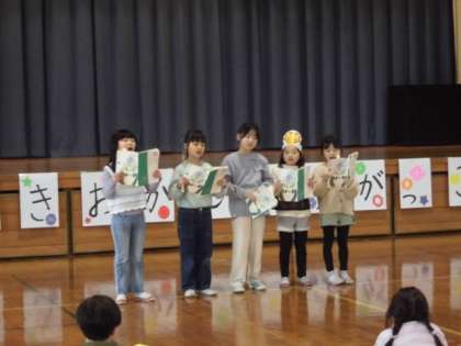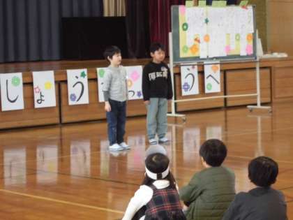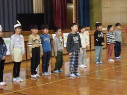 今日、来年度月岡小学校に入学してくる年長さんをお招きして、仲良し交流活動を行いました。それぞれが「年長さんに優しくしたい」「困っていたら声をかけてあげたい」「一緒に仲良く楽しみたい」という思いをもって臨んだ交流活動でした。大きな声で堂々と司会をしたり活動の説明をしたりする姿、年長さんと目つないで優しく話しかけている姿、しっかりてをつないで年長さんをエスコートする姿、そんな姿がたくさん見られ、1年生はもうすっかり月岡小学校の先輩の顔をしていました。1年生の子供達の成長をたくさん感じることができた交流会でした。