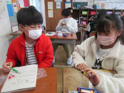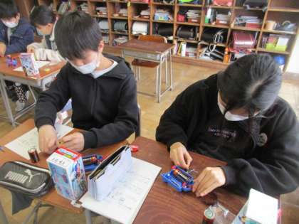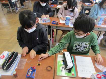 理科の学習の様子です。ペアで協力しながら電磁石の実験をすることができました。