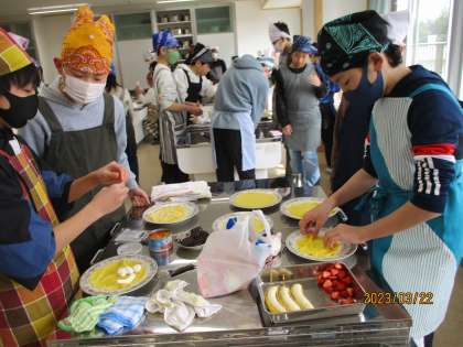 別の学校に進学する友達もいます。そんな寂しい別れではなく、笑顔で笑って最後の一日を過ごそうと、学校に再び集合した子供たち。保護者の方のご協力もあり、豪華でおいしいクレープが完成しました。