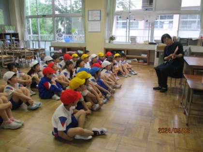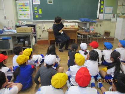 今日、2年生になって最初のお話ミッケの会がありました。今日は2冊の絵本を読んでいただきました。小さな消防車が大活躍するお話やぞうが金メダルをとるお話に、みんなすいこまれるように集中して聴いていました。