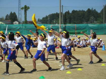 運動会予行 がんばりました!(5年) 公開日 2024/05/16 更新日 2024/05/16 第5学年 運動会まであと4日。今日は運動会予行でした。係の仕事を任された5年生は、先生の話を聞いて、道具を準備したり、下級生の競技で手伝ったりしました。 また、応援合戦でも大きな声をがんばりました。来年は自分たちが学校を動かす番です。6年生の姿をしっかりと目に焼き付けて、本番もがんばってほしいです!