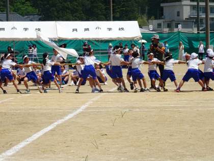 最後の全校種目、綱引きです。 綱引きでは、団の力を結集して、精一杯ひきました。