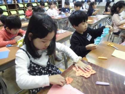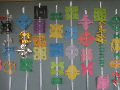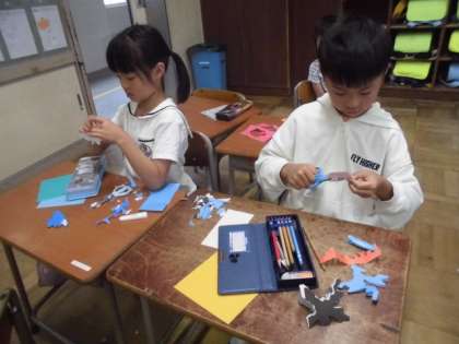 1年生 ちょきちょきかざり 公開日 2024/05/23 更新日 2024/05/23 第1学年 図画工作科「ちょきちょきかざり」では、切り紙をして飾りました。紙を動かしながら、なめらかにはさみで切っていました。 「見て!じょうずにできたよ」、「こんな形になった!」と楽しそうに取り組んでいました。