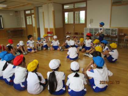 今日、ドイツに住んでいるお友達が、2年1組に体験入学に来てくれました。2年1組のみんなは、新しいお友達に大喜び!! 早く仲良しになるために、自己紹介の後、みんなでフルーツバスケットとハンカチ落としをして楽しみました。