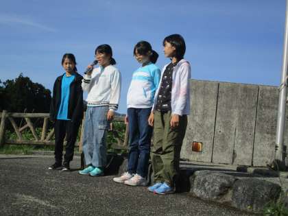 2日目の最初は朝のつどいから始まりました。同じ日に宿泊に来ている他の学校に学校紹介をしました。学年目標「咲」に向かってがんばっていることを伝えたり、全員でエールをしたりして、月岡小学校の良いところを伝えることができました。