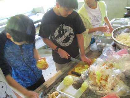宿泊学習5 公開日 2024/06/08 更新日 2024/06/08 第6学年 野外炊飯では、カレーライスをつくりました。食材チーム、ご飯チーム、かまどチームに分かれて取り組みました。去年の宿泊学習でもカレーライスをつくったので、とても手際よく調理することができました。最後には自分たちでつくったカレーライスをほおばり、子供たちも満足そうな様子でした。