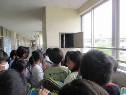 社会科の時間に「水はどこから」の学習をしています。学校の水は、どんな仕組みでどこから送られてくるのかを校舎内を回って調べました。用務員さんに普段見ることができないポンプ室や水道管等を見せてもらいました。子供たちは、興味津々で学校内の水を送る仕組みを学ぶことができました。