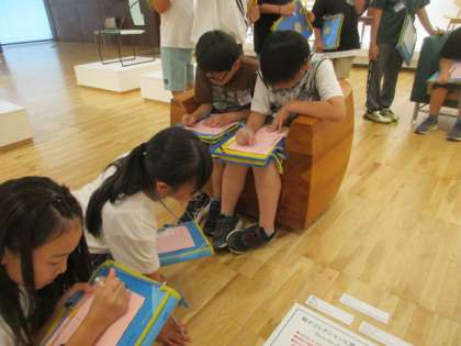 5年 校外学習 〜5の1美術館〜 公開日 2024/06/08 更新日 2024/06/08 第5学年 晴れた今日、富山県美術館とNHK放送局の見学に出かけてきました。 最初の富山県美術館では、様々な作品を見たり、ワークショップでうちわを作ったりしました。作品の細かさや、ダイナミックさを感じ、自分たちの作品づくりにも生かしていきたいという思いを膨らませました。