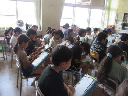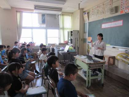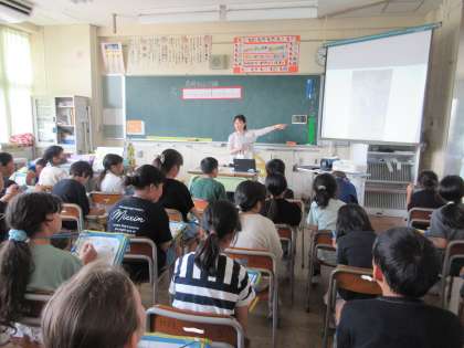 毎日、給食室ではどのようなごみがどのくらい出ているのか、また残食の量はどのくらいなのかなど、資料を使って分かりやすく教えていただきました。子供たちは、給食室でも多くのごみが出ていること、また減らす工夫をされていることに驚いていました。また、自分たちが給食を残さず、きれいに食べることで、ごみの量が減ることを学び、「今日の話を聞いて、給食を残さず食べようと思ったよ」と感想をもつ子供もいました。