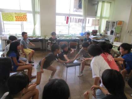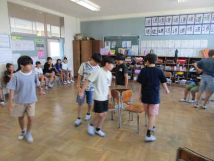 今日は、さまざまな出し物がありました。例えば、色団対抗でイントロクイズや、イラストクイズ、なぞなぞ、風船バレー、震源地ゲーム、ダンスなどです。