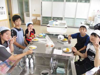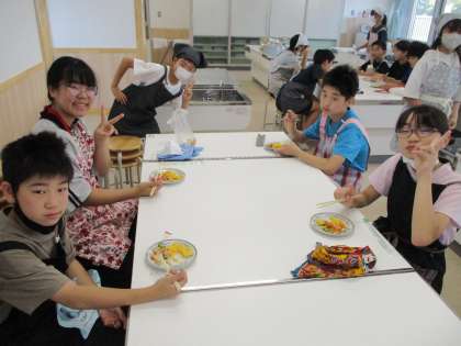 「油でいためるといい香りがする。」「簡単だったからまたつくってみたい!」などのふり返りの声が聞こえてきました。