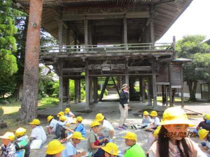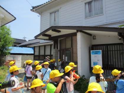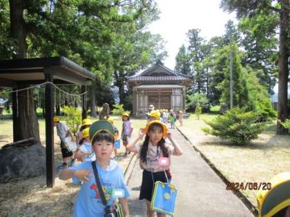 今日は青黄コースと黄コースまで探検に行ってきました。月猫カフェや布目神社、西光寺に立ち寄り、建物の特徴や周りの様子などを見てメモをしました。西光寺では、歴史あるお寺の建物に興味をもち、お寺の方にインタービューをする姿も見られました。最高気温が30度をこえる暑い日でしたが、みんな元気に探検に行ってくることができました。今度の探検は、いよいよコース別に分かれて、調べ学習に出かけます。