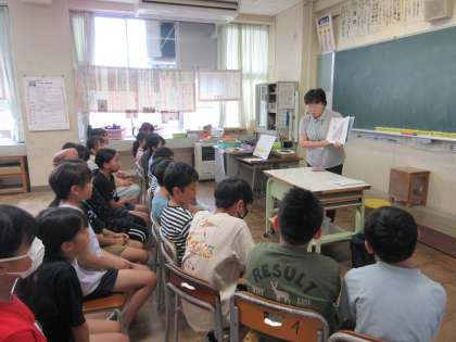 今日は、1学期最後のお話ミッケの会でした。読み聞かせしてくださったのは、戦争に関する本でした。ちょうど子供たちは、国語科で「一つの花」という戦争中の話を学習しました。今日は、これまで学習したことを思い出しながら、一人一人が真剣に話を聞いていました。