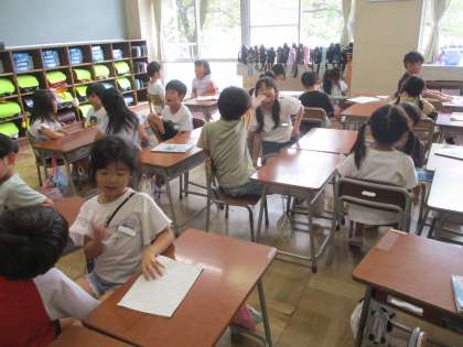 1年生 夏休みの思い出 公開日 2024/08/28 更新日 2024/08/28 第1学年 国語科の学習として、夏休みの思い出を友達に伝え、友達からの質問に答える活動をしました。県外に出かけたことやプールに行ったことなどを話していました。明日も、まだお話をしていない子供たちの思い出話を聞きます。どんなお話が聞けるのか楽しみです。