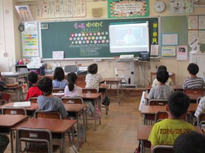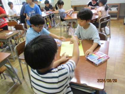写真中は、係活動の様子です。友達と協力しながら、活動を進めています。