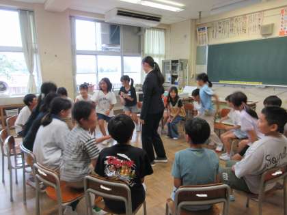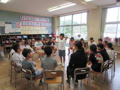 月曜日から、4年1組に教育実習の先生が来られました。1組では、互いに自己紹介をした後、先生と一緒にフルーツバスケットをして交流しました。これから15日間、一緒に学習をしたり活動したりしていきます。学年で活動することも多いので、4年生みんなで教育実習の先生とたくさん関わっていけたらいいなと思っています。