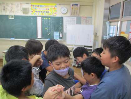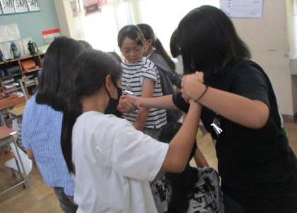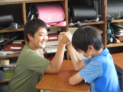 今日、各クラスで集会をしました!1組は腕相撲大会、2組は人間知恵の輪をしました。みんなで楽しい時間を過ごすことができました!