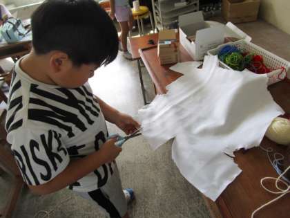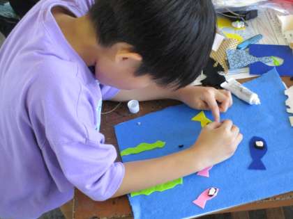 3年生 ぬのでえがくと 公開日 2024/09/21 更新日 2024/09/21 第3学年 図画工作科では、布や毛糸などのさまざまな材料を使って、絵を描く学習に取り組んでいます。子供たちは、はさみの使い方に気を付けながら、動物や自然の風景などさまざまな形を丁寧に切り取っていました。個性あふれる素敵な作品がたくさん生まれました。