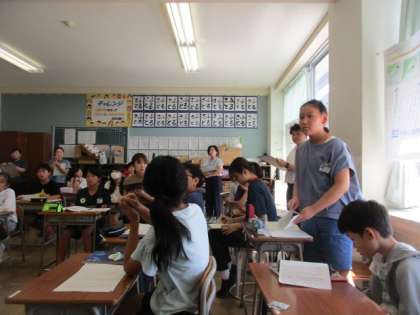 子供たちは、筆者である今泉忠明さんの主張につながる資料について考えたことを伝え合いました。「今泉さんは、環境を大切にしてほしいと伝えているよ」「日本の固有種が多い状況を守っていきたいよ」「固有種と環境のバランスが大事だよ」など、子供たちは意欲的に発表しました。子供たちががんばる姿に感心し、うれしくなりました。
