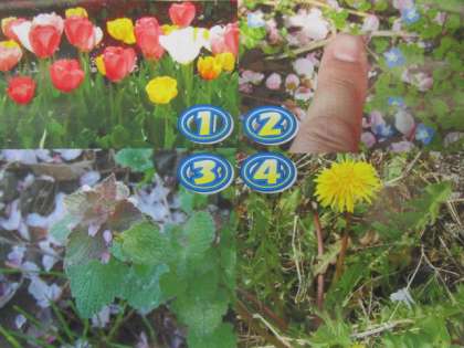 Q1:しゃしんにうつっている1〜4のしょくぶつの名前は何でしょう?